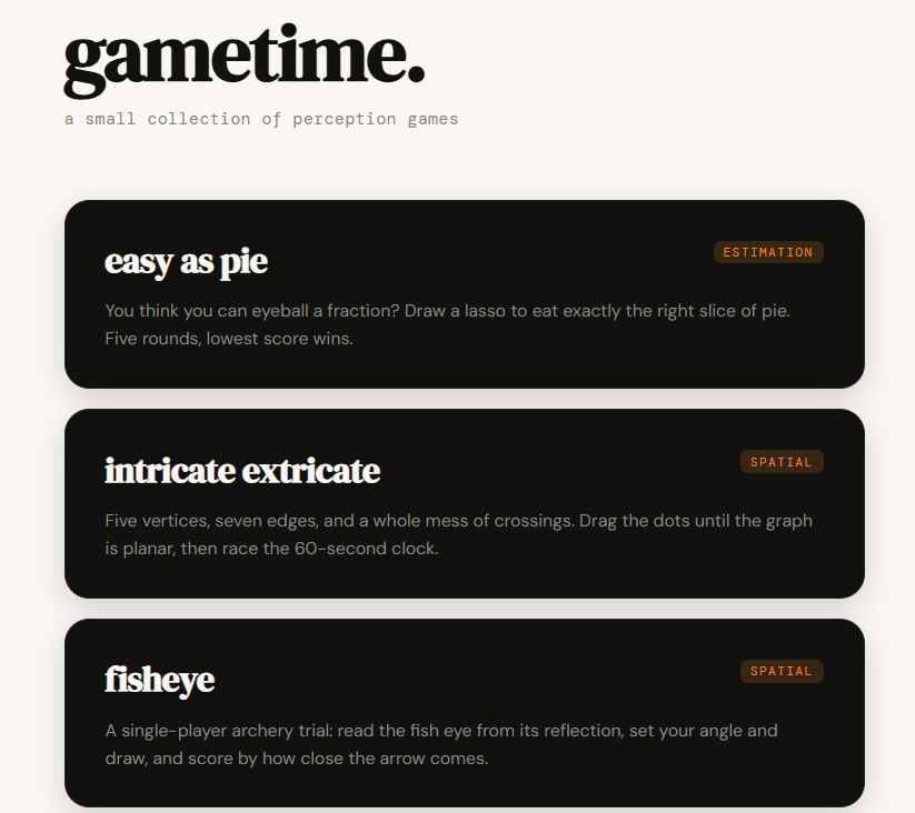 A collection of 6 perception and cognitive mini-games built as a web app.
