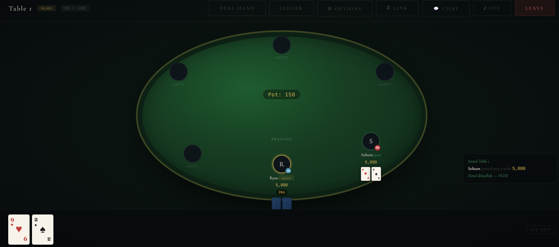 A real-time multiplayer poker engine with support for NLHE and PLO variants.
